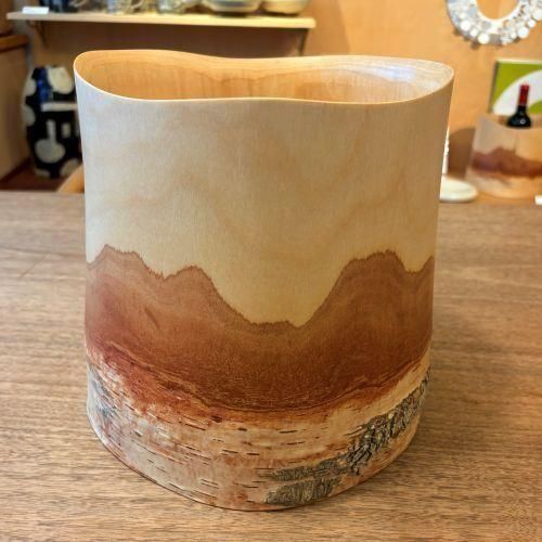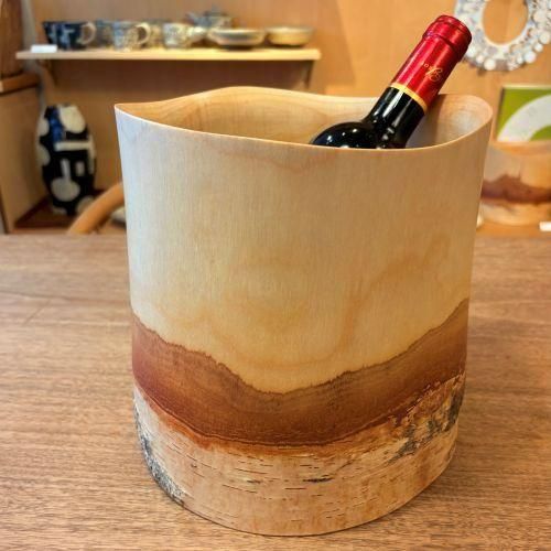福永浩太さんの白樺ワインクーラー。 北海道で育った白樺を使用し1点1点手作業で仕上げた作品は、それぞれ表情が異なります。 白樺の樹皮のグラデーションは、壮大な風景のようにも見えとても魅力的。 Mサイズはワインボトル2本向きのサイズです。
